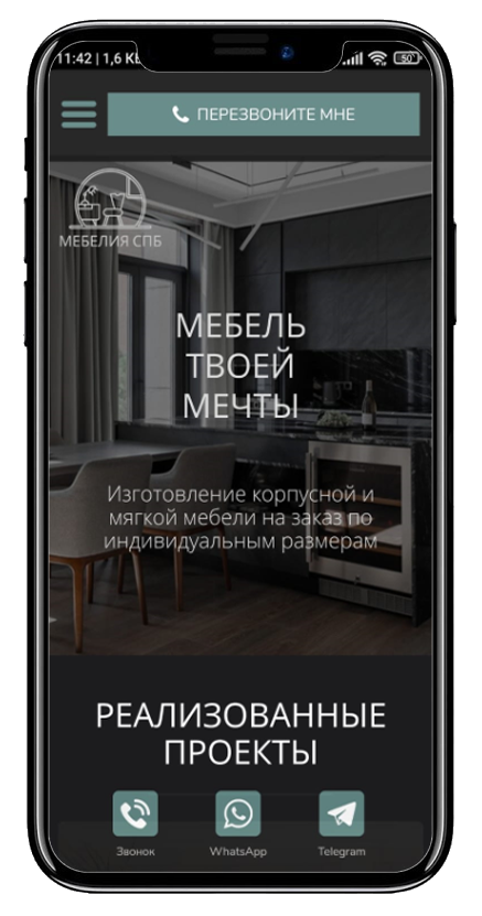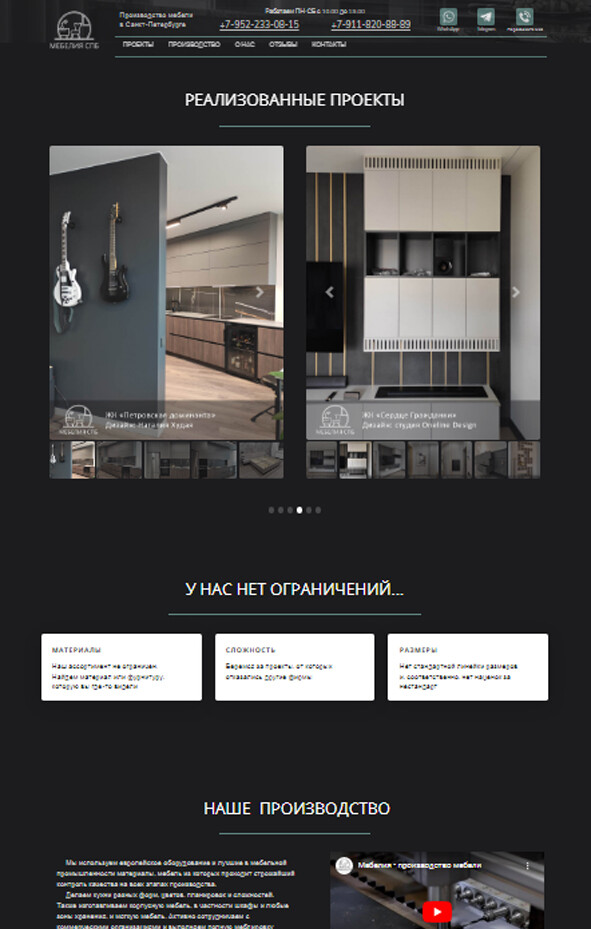 Сайт-визиткам для компании по изготовлению корпусной и мягкой мебели на заказ